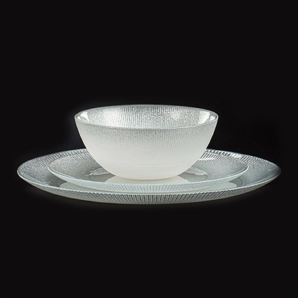 סדרת SILVER JASMINE בגימור אפור מבריק במיוחד שנראה כסוף, ליצירת שולחן אירוח אלגנטי, חגיגי ויוקרתי.